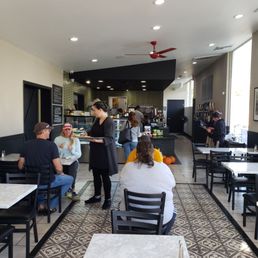 Super place with more offerings than most coffee places. Cafe is true with a nice menu and many great selfie s for a treat. My Mango Iced Tea was a smooth delight. The store, including the restroom, is clean, new, and inviting. Quick to help, the transaction was easy, without a rush and followed my timing. Excellent experience.